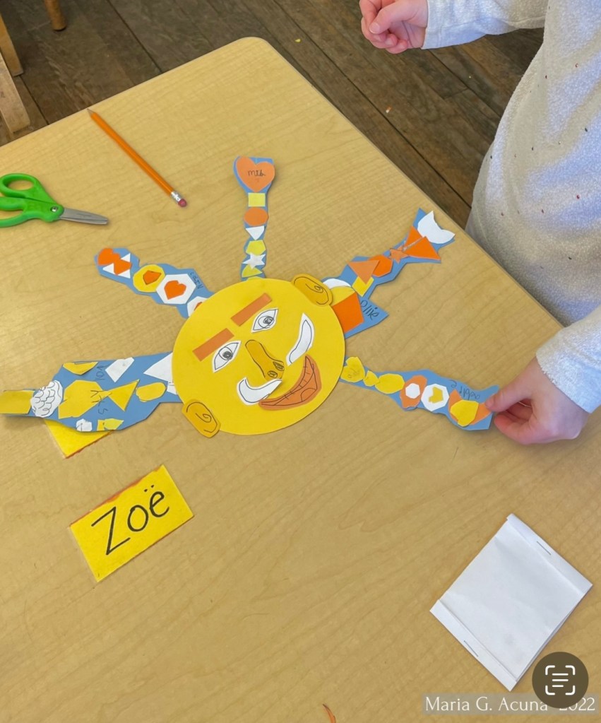 I also wrote things on the rays in Spanish related to the sun or why I’m thankful to the sun. The one above says brillo, this means bright. Bellow on the sailboat it says Día de playa meaning Day in the beach: