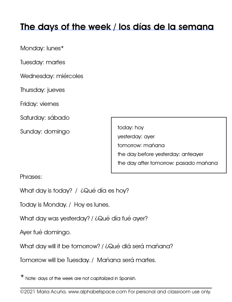 Fresh off the press, here is a vocabulary sheet with the days of the week: