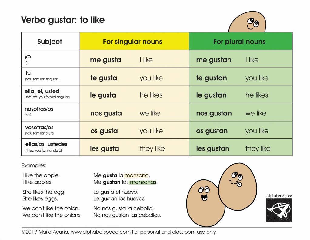 PDF Verb “to like” “gustar” graphic LINK