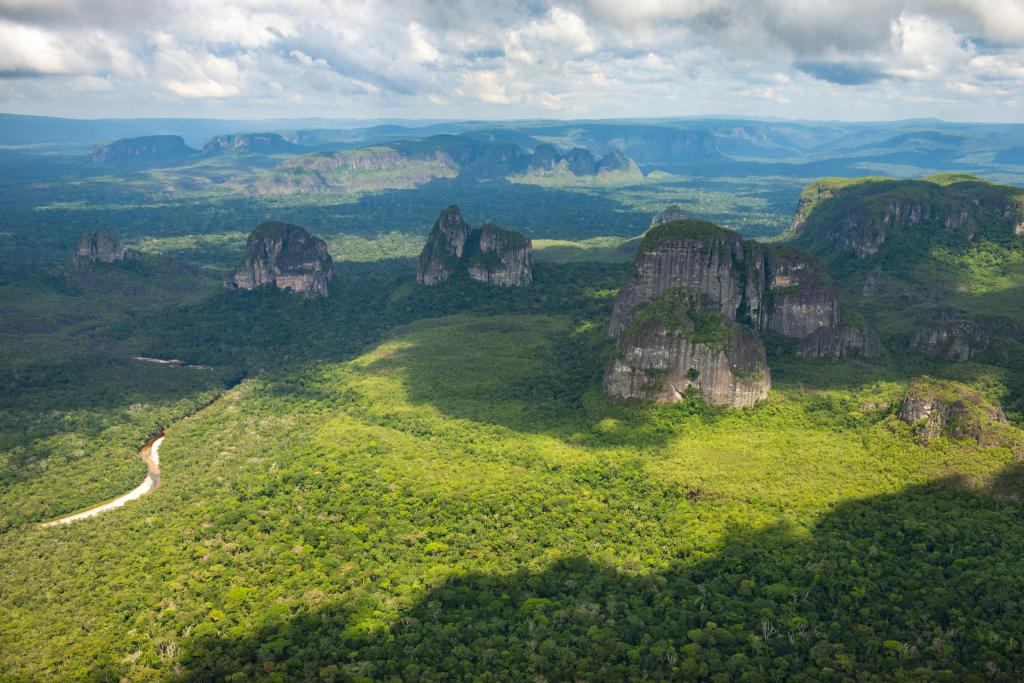 Chiribiquete National Park is made of isolated table mountains that are part of the western edge of the Guiana Shield. The Guiana Shield It is a 1.7 billion-year-old Precambrian geological formation in northeast South America that forms a portion of the northern coast. The higher elevations on the shield are called the Guiana Highlands, which is where the table-like mountains called ‘Tepuis’ are found. It is one of the few places where the fauna and flora of the Guiana Shield, Orinoco savannas, the Andes and the Amazon rainforest converge. This leads to incredible biodiversity in the pristine and remote rainforest with Tepuis that reach up to 1,000 meters in height.
