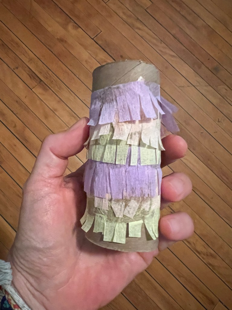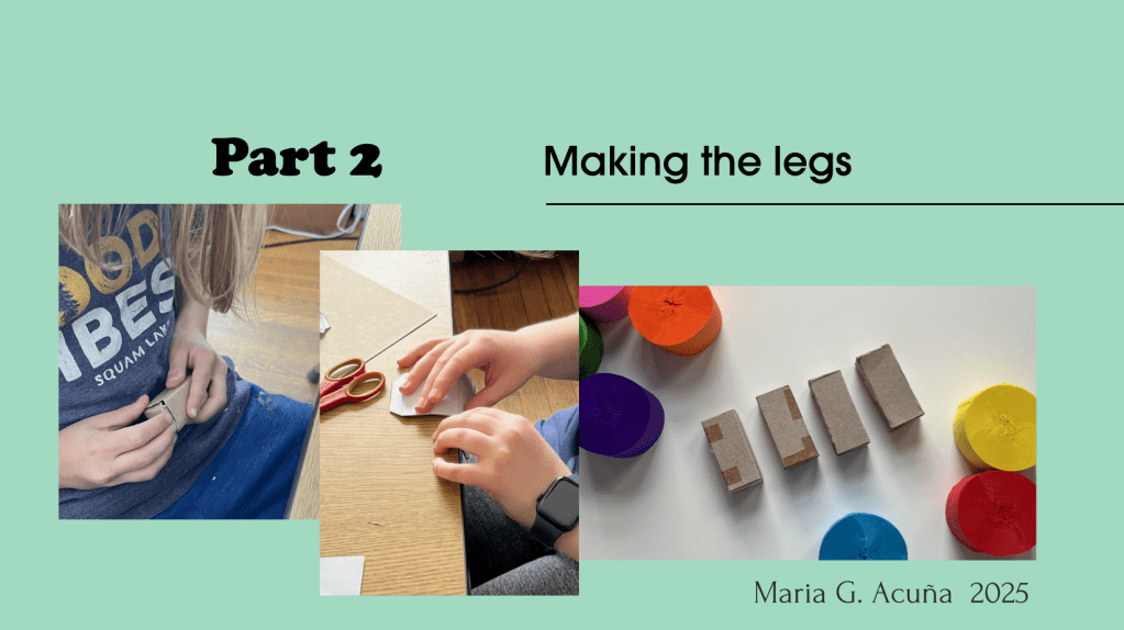 I actually had my students practice on paper rolls before the legs as they are really small and I wanted them to experience gluing the crepe paper in a bigger space first. We used clear glue on these and they did not look great as the glue makes the crepe paper transparent.