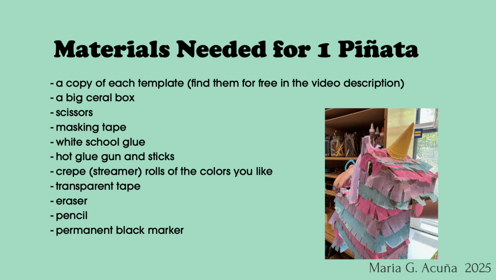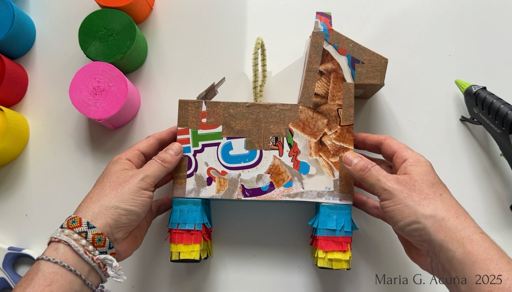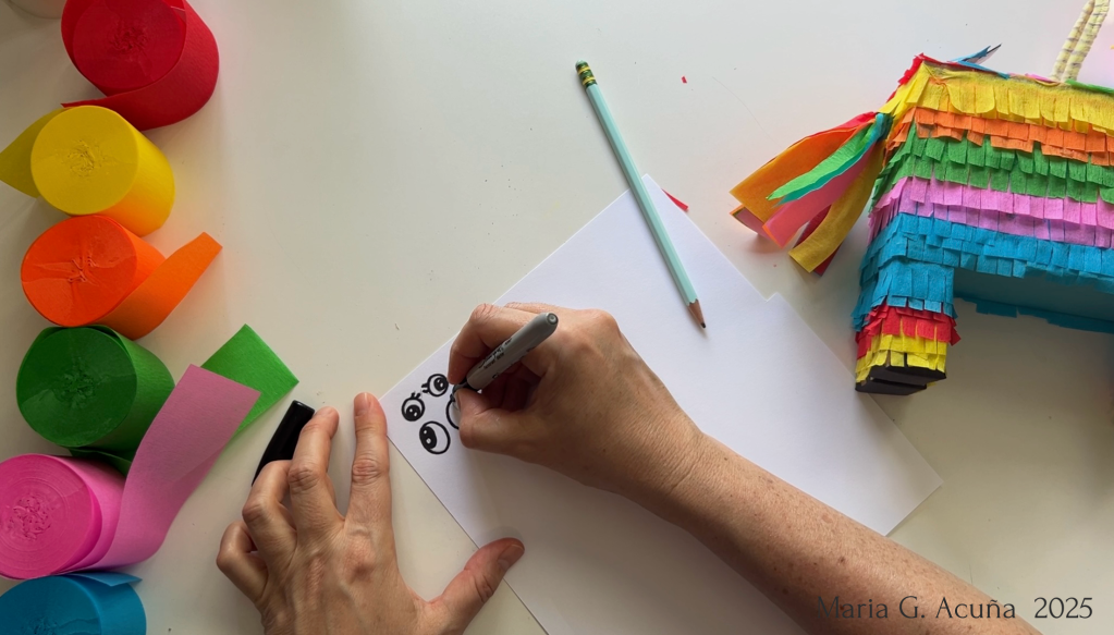 This page will take you through making a small piñata (burro/donkey style) step by step. You can make it on your own or if you are a teacher, with your students. It is a lot of work but also a lot of fun! And very rewarding!