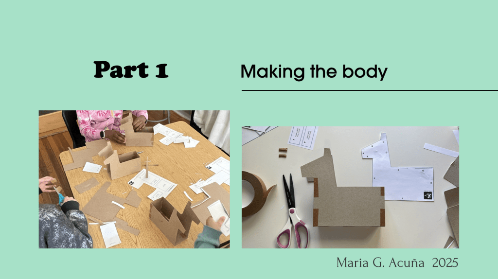 2. Cut out the body parts templates in Piñata 2. Attach the pieces using masking take. (Cutting the tale is more efficient and cost saving.)