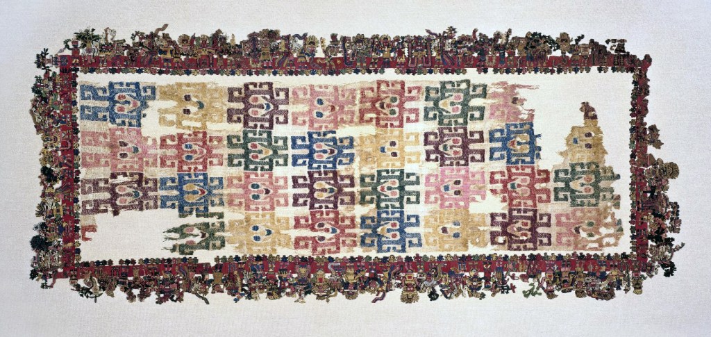 The Paracas people were a desert-dwelling society that thrived on the southern coast of Peru from approximately 800 BC to 100 AD. They are most famous for their “Paracas Necropolis” burials and their breathtakingly complex textiles, which are considered some of the finest ancient weavings ever produced. These colorful, intricate embroideries were often used to wrap mummies in massive “funerary bundles.”