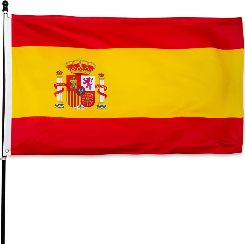 The national flag of Spain as defined and adopted in 1978, consists of three horizontal stripes, red, yellow and red, the yellow being twice the height of each stripe. Traditionally, the middle stripe was defined by the archaic term “gualda” (gold) and hence its popular name “La Rojigualda” (the red-golden).
