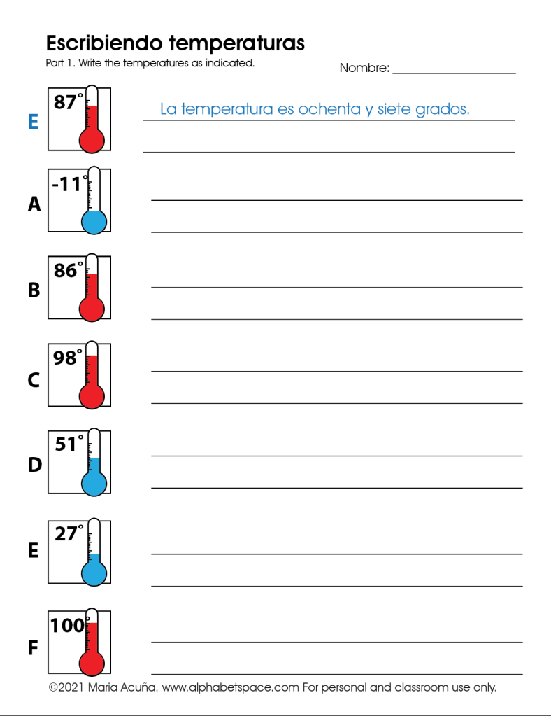La temperatura es cien grados Fahrenheit. (100 ˚ F)