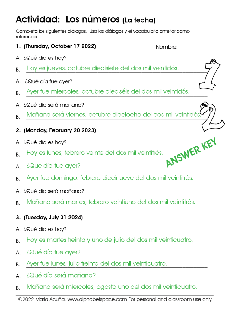 And here is an extension where students can practice writing dates. They will need the conversation worksheet above as a reference: