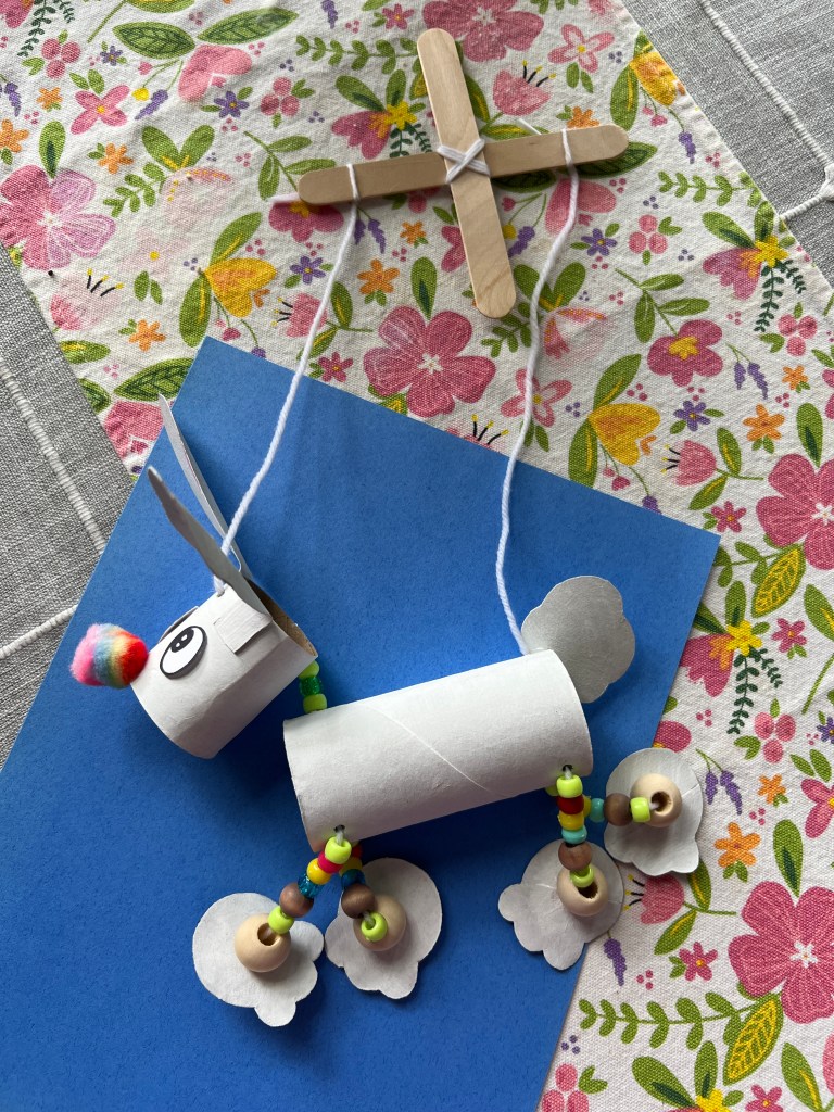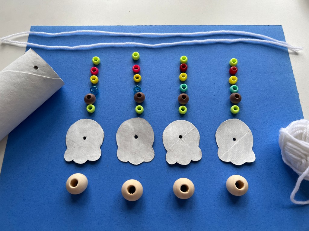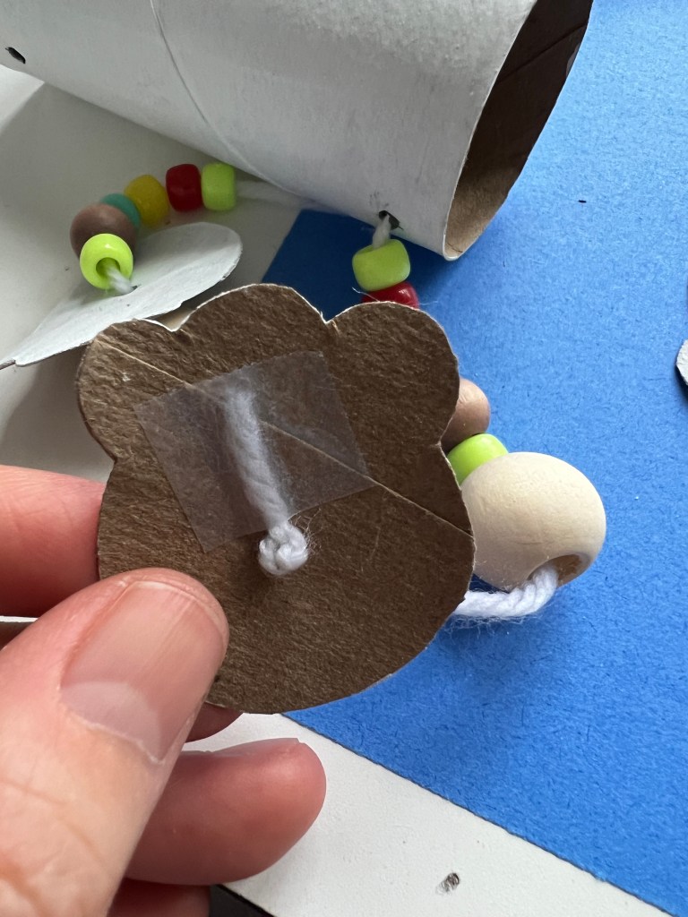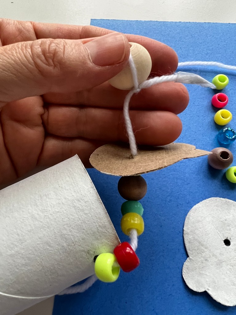 Attach a string to attach the head, use beads for the neck and thread through the top, Make the string long enough to attach to the controller.