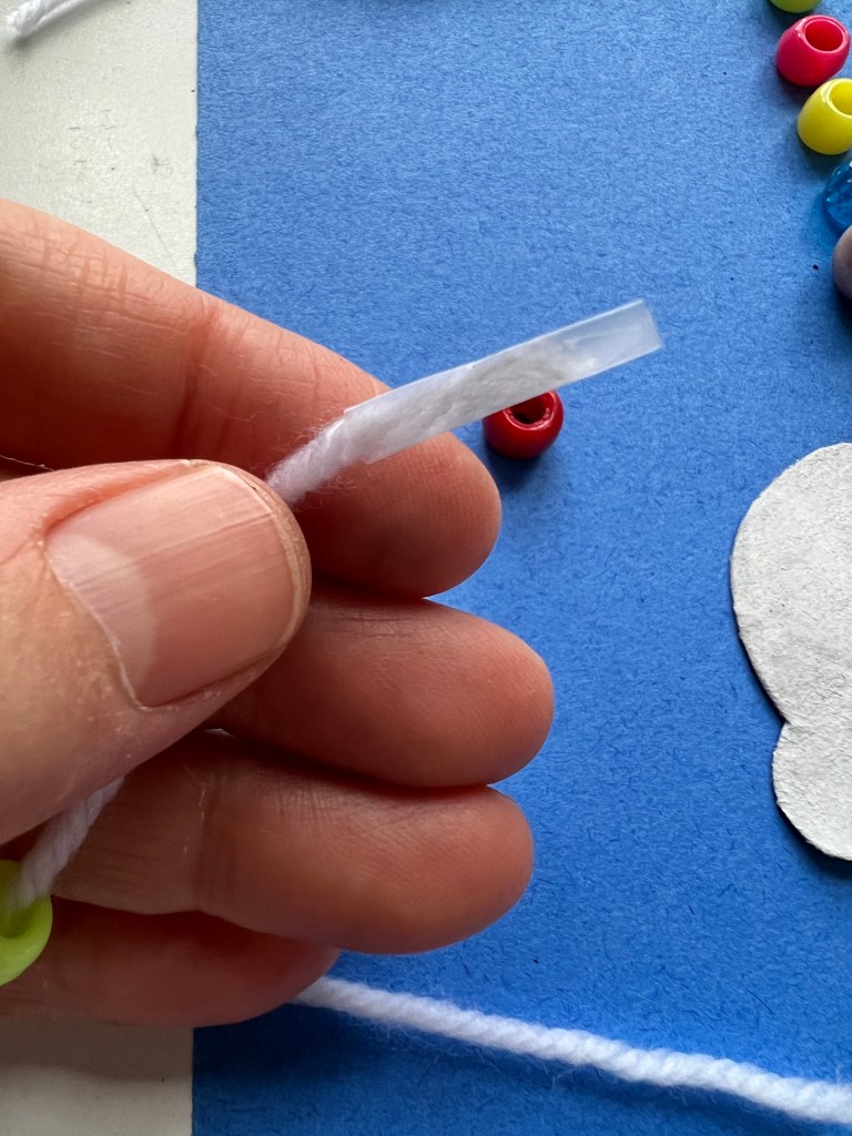 Thread the marionette’s legs. Use tape in the end if your string does not hold its fibers together.