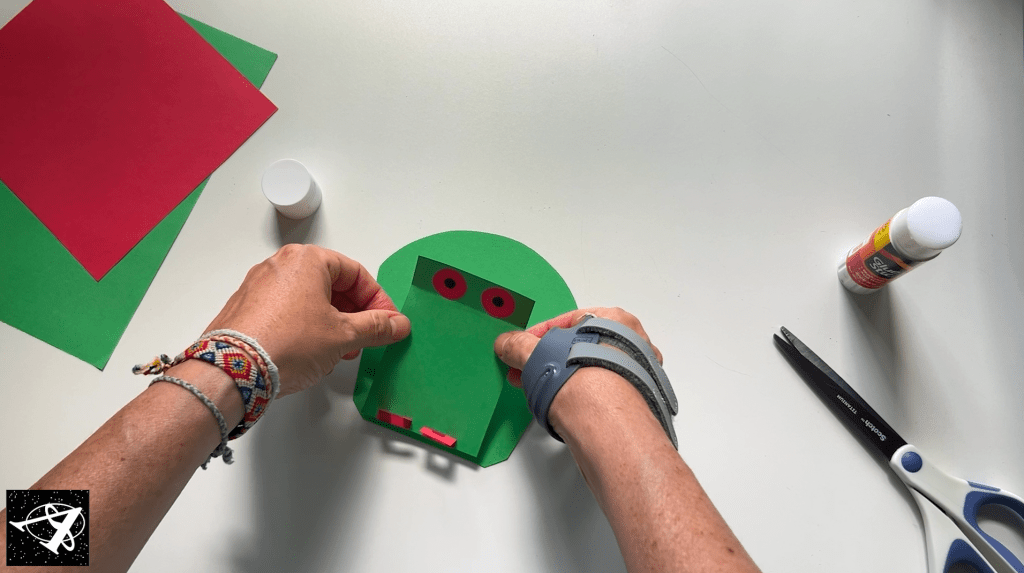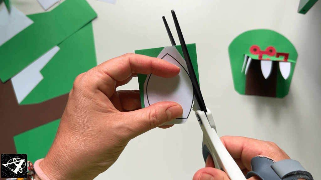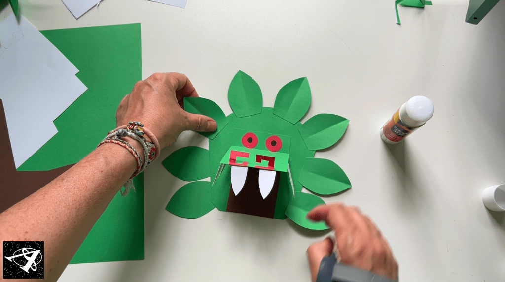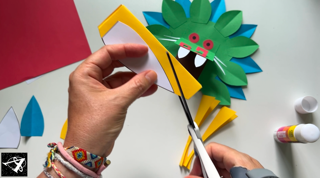 Glue the snout tho the head (only put glue on the folded part so the mouth can open and close).