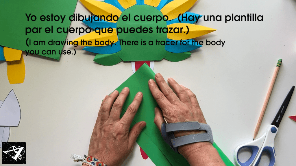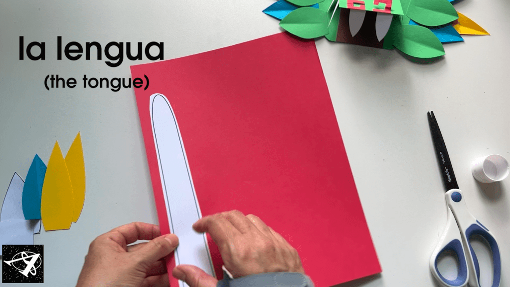 We’ll add the tongue, remember to trace always to the side of the paper so we don’t waste as much paper