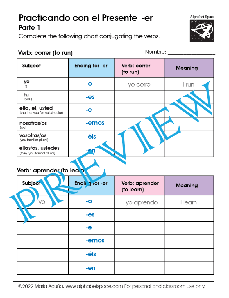 Looking for more worksheets to practice? Check out this great packet available at TPT (Teachers Pay Teachers) for $3.99 HERE. This is a preview. It includes 12 pages with 4 verb practices that increase in complexity.