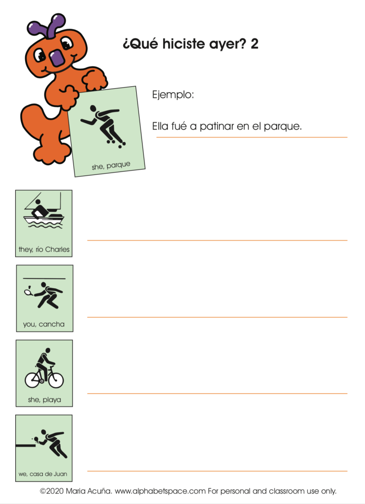 ¡Hola! To study the vocabulary related to Sports, I like to mix it up with verb conjugations. Specifically, I like using the verb “ir” (to go ). I am currently teaching my Fifth graders remotely the verb to go in the past tense. So I created the following chart: