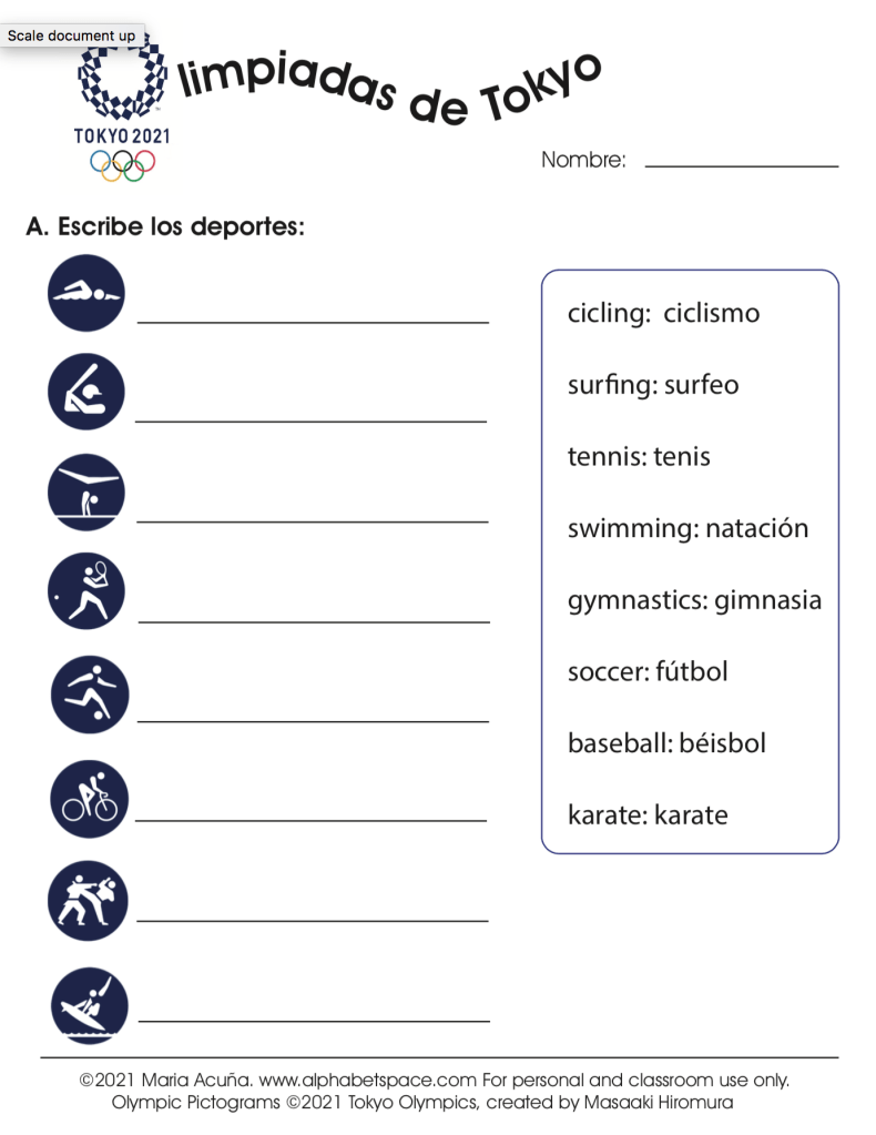 I also made the following video where students can practice this vocabulary and the past tense of the verb to go. It also takes through an activity where My Space Friends are in different camps and the sports that they do in each camp. It gives you the opportunity to practice sports and the conjugation of the verb to go in the past tense. I am including the worksheet that is in the video after it.
