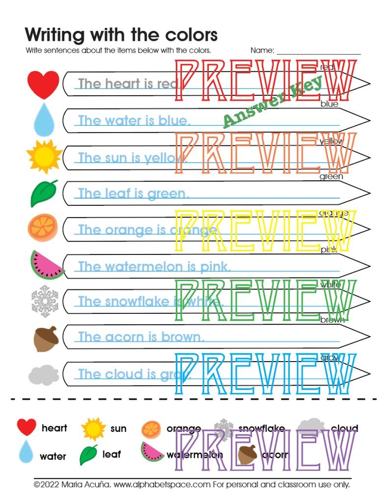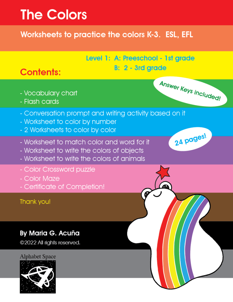 If you are looking for more activities to practice the colors check out a packet I created with Xluptinos for K-3rd graders. It has 24 pages and includes all this: