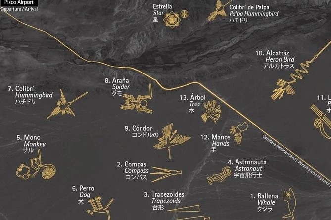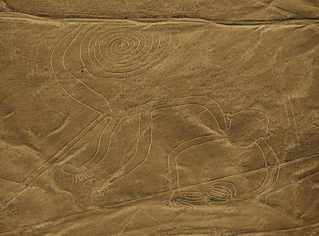 The Nazca Monkey is one of the most playful and recognizable figures in the desert, famous for its large, coiled spiral tail. It measures approximately 110 meters (360 feet) in length, making it significantly larger than both the Spider and the Hummingbird. If you were to stand the monkey upright on its feet and stretch it toward the sky, it would reach roughly the 35th or 36th floor of a modern skyscraper! Its massive hands, which notably feature only four fingers on one and five on the other, are each the size of a large studio apartment.
