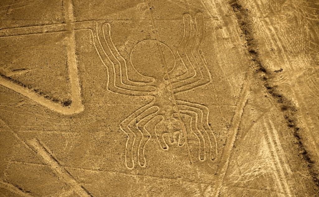 The Nazca Spider is one of the most anatomically fascinating geoglyphs, measuring approximately 46 meters (150 feet) in length. While it is roughly half the size of the Hummingbird, it is still a massive feat of ancient engineering. If you were to stand the spider upright on its front legs against a city building, it would reach approximately the 15th floor. To imagine its width, the span of its eight legs would easily stretch across a wide, four-lane highway. Interestingly, the design is famous for its “extended” leg on the bottom right, which researchers believe may be a representation of the reproductive organ of a Ricinulei, a rare spider found in the Amazon—adding a layer of biological mystery to its impressive scale.